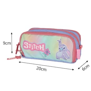 Estojo Escolar 3 Repartições Stitch Rosa   O Estojo Escolar Juvenil Stitch Disney é um produto de alta qualidade, fabricado em poliéster resistente, garantindo durabilidade e resistência ao uso diário. Com uma cor unica, este estojo é perfeito para jovens que adoram a personagem Stitch da Disney.   O modelo possui três compartimentos tornando-o ideal para estudantes que precisam carregar uma grande quantidade de material. Além disso, os puxadores personalizados adicionam um toque de charme e personalidade ao estojo.   O Estojo Stitch é conhecida pela qualidade e design de seus produtos, e este estojo não é exceção. Com sua capacidade e estilo, é uma escolha perfeita para o uso escolar ou juvenil.   Características do Estojo Escolar: - 3 Repartiçoes com bastante espaço (sedo dois compartimentos com total de 14 elásticos para canetas e lapis) - Fecho com zíper personalizado e emborrachado - Estampa Stitch - Modelo Unico e Exclusivo - Material: 100% Poliéster - Material Forro: 100% Poliéster   Dimensões do Estojo Escolar: - Altura: 9 cm - Largura: 20 cm - Profundidade: 6 cm   Conteúdo: - 1 Estojo