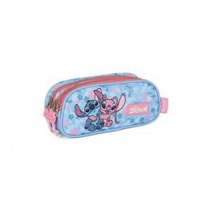 O Estojo Triplo Stitch & Angel possui dimensões de 22 x 10 x 8 cm, com capacidade aproximada de 3 litros, sendo classificado como estojo médio. Confeccionado em poliéster resistente, o modelo conta com três compartimentos espaçosos, garantindo organização prática e eficiente para lápis, canetas, borrachas e outros acessórios escolares.