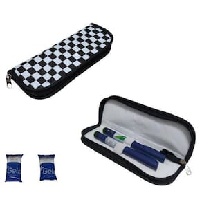 Estojo na cor/estampa quadriculado preto e branco, caso queira outra cor/ estampa, entrar em contato ou selecionar dentro dos outros anuncios.Acompanham 2 gelinhos de gel 15 gramas cada , que utilizados no estojo aumentam o tempo de conservação da sua insulina.Estojo térmico com 4 camadas:1 estampa/ cor escolhida;2 manta pack é o produto mais indicado para controle de temperatura 3 manta aluminizada redução de temperatura aproximadamente de 6c a 8c 100% impermeável4 nilón onde é fixado os elásticos e os bolsos, produto que tem a função de estruturação da peça, além de permitir a limpeza Observação: itens usados nas fotos internas dos estojos, não acompanha o produto são meramente ilustrativos.Dimensões do estojo:Exterior:Comprimento: 23cmLargura: 8cmProfundidade: 3cmInterior:Tamanho dos bolsos:2 bolsos de:Comprimento: 11cmLargura: 6 cm obs: medidas podem ter pequenas variações por se tratar de um produto confeccionado Marca: Fada Do Retalho