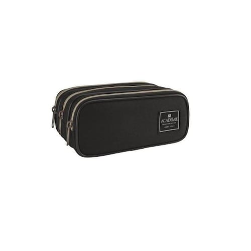 Estojo Tilibra Triplo Academie PretoA linha Académie foi desenvolvida para tornar as atividades do dia a dia mais práticas. O mix dessa marca é completo, com variedade em cores e estampas. O Estojo Triplo Grande Académie Preto é prático, espaçoso e ideal para quem possui muitos lápis, canetas, outros materiais e acessórios. Além de facilitar seu dia a dia na escola, esse estojo possui material resistente, três compartimentos que auxiliam na organização do material e fechamento em zíper.Compartimento: Três Detalhe: Etiqueta costuradaFechamento: Em zíper Formato: 200mm x 90mm Material: Poliéster Puxador: Em metal