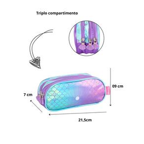 Estojo triplo escolar lilás up4you 3 compartimentos Tecido 100% poliéster de alta resistência Puxador personalizado Medidas aproximadas: Altura: 10 cm largura: 22 cm profundidade: 07 cm