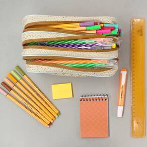 Desenvolvido pela renomada marca Tilibra, o estojo possui um design colorido Sunshine que vai encantar os jovens estudantes. Além disso, conta com etiqueta costurada e silkscreen, fechamento em zíper e puxador em metal, garantindo durabilidade e resistência.