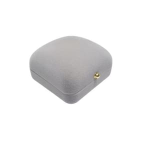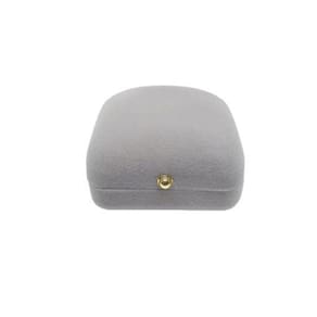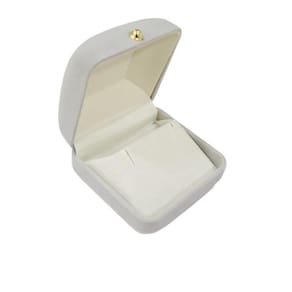 Estojo com exterior em veludo cinza Base com suporte revestida em veludo off white com dois cortes retos para brincos ou colar delicado. Revestimento interno da tampa em cetim off white. Dobradiças em metal Material: embalagem com alta qualidade em flocagem de veludo e acabamento em cetim. Função: brincos,conjuntos de brincos + correntes Altura: 3,5 cm. Largura: 6.5 cm. Profundidade: 6.0 cm Marca: Ph Martins
