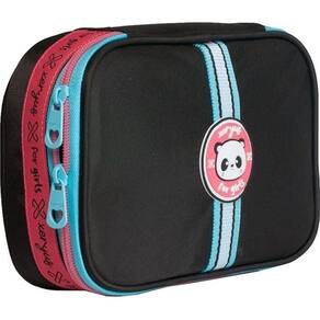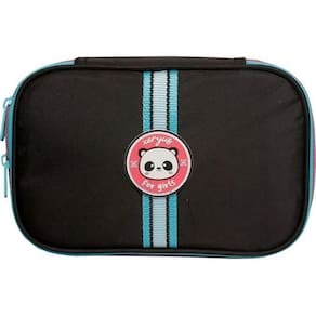 O Estojo Box Utility Panda Preto é a escolha perfeita para quem busca uma bolsa espaçosa. Com um design moderno, cheia de detalhes fofos exclusivos e PVC com glitter, patch emborrachado aplicado.