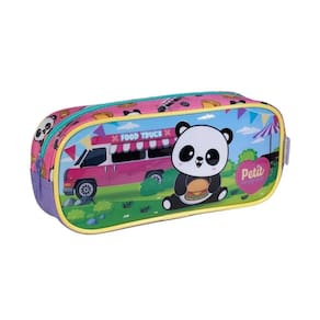 Características Adicionais: Estampa exclusiva Puxador de metal Zíper de alta qualidade Interior espaçoso e de fácil limpeza Painel frontal estruturado em PVC com brilho Com um hambúrguer nas patinhas e um sorrisinho encantador no rosto, ele adora brincar, fazer novos amigos e, claro, cuidar com carinho de todos os lápis, canetinhas e segredinhos criativos das crianças