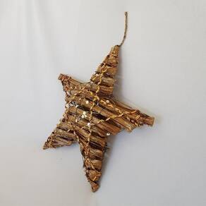 Material: ;Arame, Palha Natural, Cordão Dourado e Glitter;Peso: 128grCores: Palha e Dourado.Conteúdo da Embalagem: 1 Estrela.Diâmetro: 30cmEspessura: 8cm