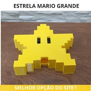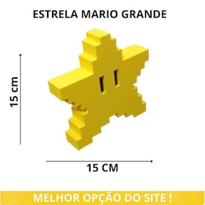 Estrela da árvore de natal do mario bross geek gamerEstrela do mario pode ser usada na arvore de natal pois tem um furo para encaixar no topo da arvore ou seguir de decoraçao para seu quarto ou sala essa e bem grande.Produto e feito em impressão 3d em plastico pla.Tamanho 15 x 15 x 3Produto suscetível à variações na tonalidade das cores, devido a fabricação dos materiais e/ou configurações do monitor em que as imagens são reproduzidas. Marca: Viza 3D Games