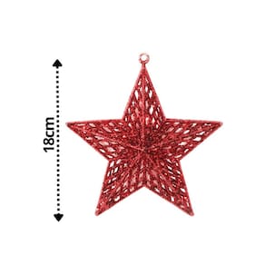 Estrela 3D Glitter Vazada Vermelha (18cm) – Com Furo para Pendurar