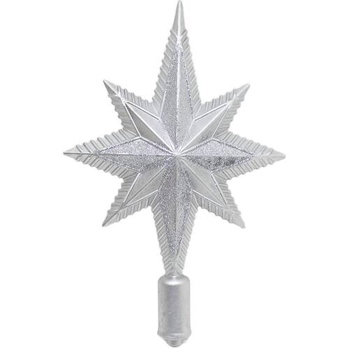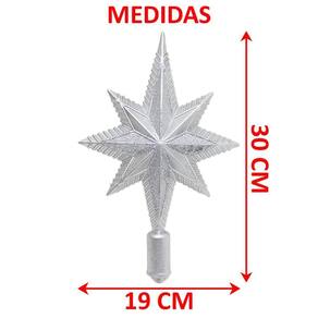 Características Gerais do Produto: Material: Plástico Modelo: Estrela Para Árvore de Natal Cor: Prata Dimensões aproximadas: Altura 30cm x Largura 19cm Garantia: Garantia contra no