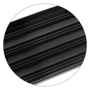 Fabricado em alumínio na cor preta com capacidade máxima suportada de até 100kg para subida, o estribo também acompanha pisante antiderrapante e possui também ponteiras injetadas em plástico ABS, concedendo ainda mais beleza à peça em toda sua extensão a fim de garantir maior segurança ao pisar.