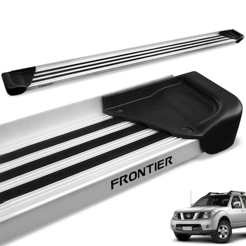 Estribo na cor do alumínio Natural com excelente acabamento lateral em alumínio e ponteiras injetadas em poliuretano, concedendo ainda mais beleza à peça acompanhado ao melhor custo-benefício do ramo.