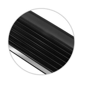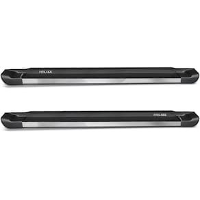 Fabricado em Aluminio de alta qualidade e resistência e ponteiras em plástico injetado ABS, com pintura automotiva na cor Preto Fosco de alto padrão, além de acabamento lateral cromado em aço inox e adesivo em alto-relevo resinado com o nome do veículo e pisante na cor preta para um estilo diferenciado.