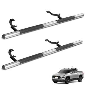 Fabricado em Aço Cabono, com suas ponteiras em poliuretano, cujo materia de excelente qualidade conhecido pela sua alta resistência e durabilidade, possuindo acabamentos na cor preto deixando a sua picape com um visual ainda mais completo.