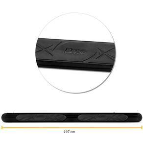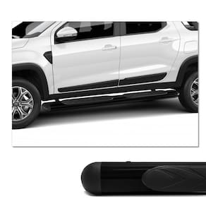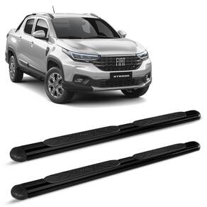 Estribo fabricado em Aço Carbono, com suas ponteiras em poliuretano, cujo matéria de excelente qualidade conhecido pela sua alta resistência e durabilidade, possuindo acabamentos na cor preta deixando a sua Fiat Strada com um visual ainda mais completo.