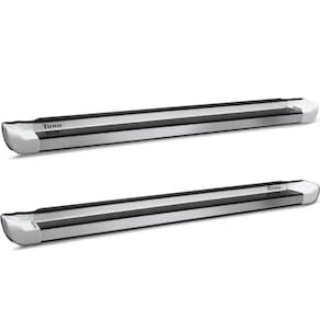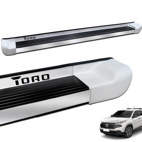 Fabricado em Aluminio de alta qualidade e resistência e ponteiras em plástico injetado ABS, com pintura automotiva na cor Branco Ambiente de alto padrão, além de acabamento lateral cromado em aço inox e adesivo em alto-relevo resinado com o nome do veículo e pisante na cor preta para um estilo diferenciado.