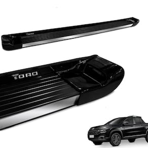 Fabricado em Aluminio de alta qualidade e resistência e ponteiras em plástico injetado ABS, com pintura automotiva na cor Preto Carbon de alto padrão, além de acabamento lateral cromado em aço inox e adesivo em alto-relevo resinado com o nome do veículo e pisante na cor preta para um estilo diferenciado.