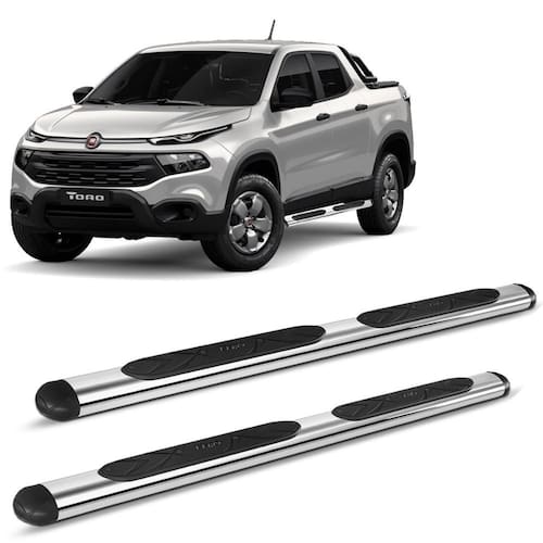 Estribo fabricado em Aço Cabono, com suas ponteiras em poliuretano, cujo matéria de excelente qualidade conhecido pela sua alta resistência e durabilidade, possuindo acabamentos na cor preta deixando a sua Fiat Toro com um visual ainda mais completo.