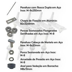 - 6 Parafusos com Rosca Dupla em Aço Inox: M8x250mm;