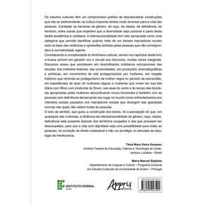 Os estudos culturais têm um compromisso político de desnaturalizar construções que vão se sedimentando na cultura trazendo limites muito diversos para a vida das pessoas. Contestar as barreiras de gênero, de raça, de classe, de deficiência, de território, entre outras que impedem que a diversidade seja possível é parte desta tarefa acadêmica e cotidiana. A interseccionalidade tem sido apropriada como uma categoria que permite identificar quando mais de um desses marcadores sociais está na base das violências e opressões sofridas pelas pessoas que não correspondem à normatividade vigente. Considerando a complexidade do fenômeno cultural, vemos nos capítulos deste livro a busca comum em garantir voz e escuta aos discursos, muitas vezes marginais. Discursos esses que acontecem em diversificados cotidianos educacionais das escolas, dos institutos federais, das universidades, em produções cinematográficas e artísticas, em movimentos de luta protagonizados por mulheres, em resgate histórico que remonta ao protagonismo da mulher negra no período da escravidão, em experiências de lazer de mulheres negras e mulheres que vivem em sua lida diária com filhos com síndrome de Down, nas asas do vento e do tempo das bicicletas apropriadas pelas mulheres descortinando novos horizontes e também com as pessoas com deficiência demarcando seu lugar no mundo como enfrentamentos aos interditos sociais pautados nos marcadores sociais que divergem das apertadas normas nas quais não cabem todas as pessoas. O eixo de sentido, que guiou a construção dos textos, foi a percepção de que, em quaisquer das vivências, a dinâmica da interseccionalidade de gênero, raça, classe, deficiência está presente dizendo dos territórios ocupados e dos que precisam ser desocupados, para que a vida com dignidade seja uma possibilidade para todas as pessoas, na condição de direito inalienável e não um privilégio ou derivado da ideologia da meritocracia.
