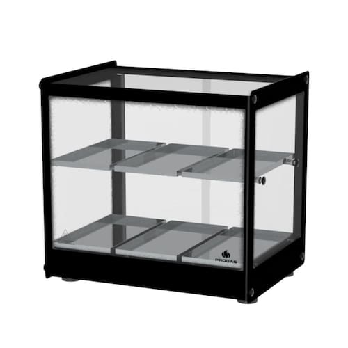 Seu design quadrado com portas de vidro e estrutura com acabamento epóxi facilita a higienização e valoriza a exposição dos alimentos. O sistema de aquecimento elétrico proporciona temperatura uniforme, mantendo os produtos sempre prontos para o consumo.