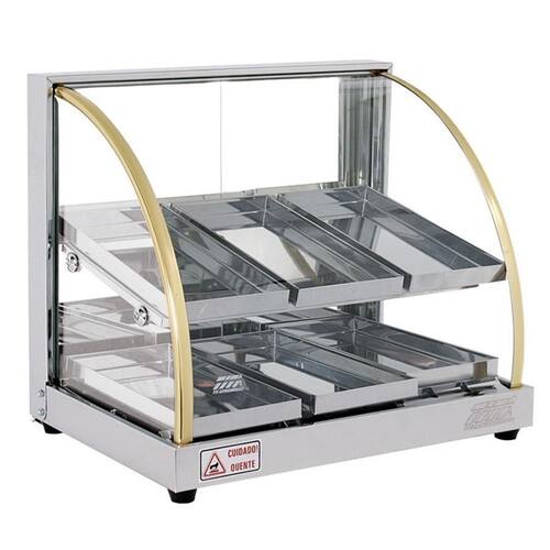 Estufa de Aquecimento 6 Bandejas 2 Níveis - Titã W6BD - Monofásica Descrição Ficha Técnica: Economia com elegância. Produto ideal para uso em pequenos negócios como bares e lanchonetes, com custo competitivo. Fabricada toda em aço inox. Acabamento e bandeja internos em aço inox brilhantes. Resistência blindada. Termostato Controlador Temperatura. Todos os vidros temperados. Não possui iluminação. Potência: 250 W Frequência: 50 - 60 Hz Tensão: 127 ou 220 V Peso Líquido: 12,5 Kg Peso Bruto: 13 Kg Medidas da BANDEJA: 14 x 28 x 2 cm inox. Medidas: 41cm A x 48cm L x 34cm P Medidas Embalagem: 45cm A x 52cm L x 38cm P Marca: Não Informado Ean: 7890100027914