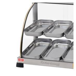 DescriçãoBandejas em aço inoxidável com 3 cm de altura;Elegantes frisos dourados;Termostato bimetálico para economia de energia elétrica;Resistência tubular de baixo consumo;Vidros Temperados: maior segurança;Umidificador: Seus produtos sempre fresquinhos;Ideal para expor e conservar alimentos sempre quentinhos.Indicadas para bares, padarias, restaurantes, cafeterias, lanchonetes, lojas de conveniência e serviços de alimentação em geral.