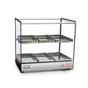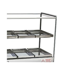 Estufa para Salgado Quadrada Dupla 6 Bandejas Linha EVR BC TitãReferência no mercado, a Estufa para Salgado Quadrada Dupla 6 Bandejas Linha EVR BC Titã é ideal para conservar e ser usada como vitrine para seus alimentos. Sua estrutura é reforçada com alumínio anodizado e aço inox, material também presente nas dobras das bandejas, e seus vidros são temperados e os lateriais tratados termicamente, garantindo assim que eles não soltem independente da temperatura.Recomendada para lanchonetes e bares, sua eficiência e durabilidade garantem sua qualidade. Material de FabricaçãoEstrutura em Aço Inox e alumínio anodizadoVidros laterais com serigrafiaBandejas em Aço Inox Medidas do ProdutoProfundidade: 47cmLargura: 36,5cmAltura: 44,5cm INFORMAÇÕES TÉCNICASTensão: 127V ou 220VAtinge de 0 a 90CPotência: 250WFrequência: 50-60HzBandeja 14 x 28 x 2 cmTodos os vidros temperados;Termostato;Vidros laterais com serigrafia, tratados termicamente não solta com temperatura ;Resistência elétrica em aço inox 304 tubular;Fiação elétrica com revestimento em silicone resistente a 300C GARANTIA: 3 meses Imagens meramente ilustrativas. Produtos sujeitos a alterações sem aviso prévio.
