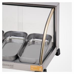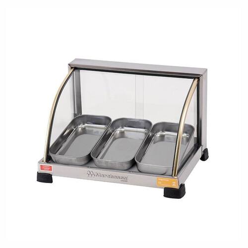 Estufa para salgados ouro de 3 bandejas curva - marchesonise você é proprietário de um bar, lanchonete, padaria ou restaurante, não poderá ficar sem este produto em seu estabelecimento uma maneira prática e eficaz de preservar seus salgados, além de mantê-los mais quentes durante um maior período de tempo. O umidificador, ajuda a evitar que os alimentos sejam desidratados e ressecados, preservando assim, sua textura e sabor. Características:bandejas em aço inoxidável com 3 cm de altura;perfil/friso dourado em plástico abs. Elegantes frisos dourados;termostato bimetálico regulável para economia de energia elétrica;resistência tubular de baixo consumo 250 w - 0,25 kwh;umidificador. Seus produtos sempre fresquinhos;ideal para conservar salgados, pastéis, assados em geral esfihas, croissants, tortas, empadas . Especificações: marca: marchesoni modelo: ef.2.031-032 bandejas: 3 comprimento: 34 cm largura: 42 cm altura: 280 cm peso: 6 kg alimentação:220 v consumo: 250w / 0,25kw/h umidificador: sim certificação do inmetro: bra ho 13/0172