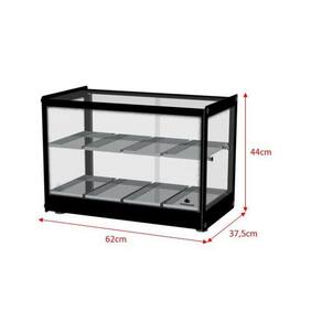 Seu design quadrado com cantos retos foi projetado para facilitar a limpeza e garantir melhor vedação, reduzindo frestas e evitando o acúmulo de resíduos. As portas e laterais em vidro temperado garantem visibilidade total dos produtos, enquanto o sistema de aquecimento elétrico com distribuição uniforme de calor mantém os alimentos sempre na temperatura ideal de consumo.