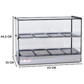 Exemplo de uso: Sirva coxinhas, empadas, pizzas ou pão de queijo sempre na temperatura ideal, prontos para o cliente levar!