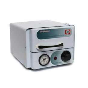 Tem capacidade de 1,7 litros, potência de 145 watts e acompanha estojo em inox com tampa para acondicionamento do material a ser esterilizado.
