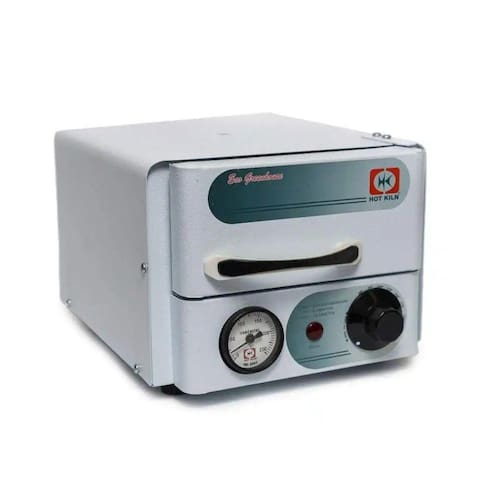 A Estufa Tradicional Hot Kiln HK 1,9 L é fabricada em chapa metálica com pintura eletrostática a pó e cuba interna em aço galvanizado. Composta por 2 resistências de mica blindada de 200 watts, termostato controlador de temperatura média de 50/200C, chave HH (bivolt), orifício superior para aferição de temperatura, chave liga/desliga, termômetro frontal e lampada de led.