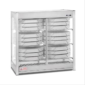 Mantém e conserva os alimentos quentes até servir ao cliente.Trabalhando de forma simples e prática, conserva e mantém pizzas e pratos aquecidos por mais tempo.Com sistema Pass-Thru, ideal para restaurantes e pizzarias.Características:Estrutura fabricada em perfil de alumínio anodizado e aço inox;Com todos os vidros temperados;Sistema Pass-Thru,das portas dos dois lados frontal e traseira;3 prateleira - grelhas em aço carbono niquelado;Termostato para controle de temperatura até 90C;Termômetro analógico frontal com indicação da temperatura;Resistência elétrica em aço inox 304 tubular;Recipiente tipo gaveta para adicionar água e gerar umidade;Fiação elétrica com revestimento em silicone resistente a 300 C.Produto com certificação do Inmetro.Dados Técnicos:Capacidade: Até 18 caixas de pizzas de 47cm ou até 72 marmitas n 9Potência (Watts): 1500Frequência (Hertz): 50 - 60Tensão (Voltagem): Mono 127 ou 220VConsumo (Kw/h): 1,5Medidas em Centímetros:Comprimento: 100Largura: 51Altura: 84 Peso Bruto: (Kg): 42,00