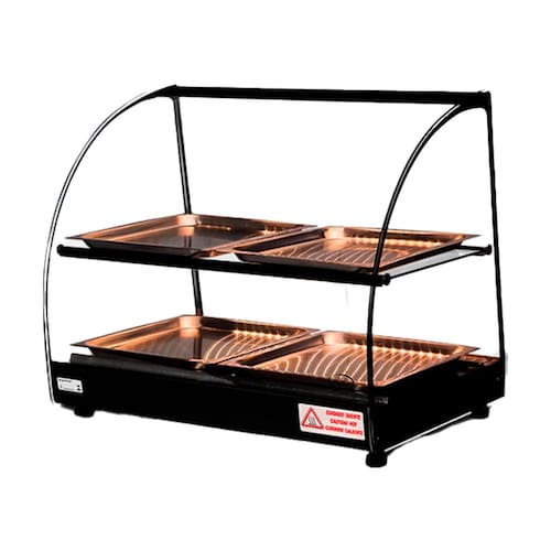 Características da Estufa Vitrine Salgados Curva Dupla Com LED 4 Bandejas Preta Caliope Tita: