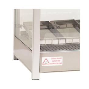 Fabricada em alumínio anodizado e aço inox, a estufa conta com vidros temperados e bandejas em aço inox, garantindo resistência e visibilidade. Com iluminação LED e termômetro analógico, permite controle preciso da temperatura e destaque visual dos alimentos.
