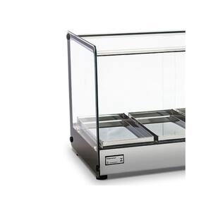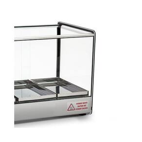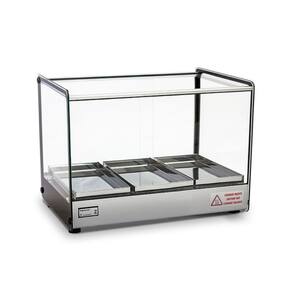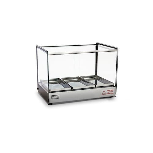 Estufa Vitrine Quadrada para Salgados 3 Bandejas EVR Cinza TitãA Estufa Vitrine Quadrada para Salgados 3 Bandejas EVR Cinza Titã é perfeita para a conservar e expor seus alimentos, ela trabalha de forma exemplar para que a comida esteja sempre na temperatura certa. Sua estética Clean e visual retrô possuem a mesma eficiência porém com o custo de sua manutenção mais baixo que as demais. Compacta, ela se adapta ao ambienteSendo uma das mais bem avaliadas no mercado, ela é a estufa ideal para o seu negócio Material de FabricaçãoEstrutura em alumínio anodizado e aço inox;Bandejas com dobras em aço inox; Vidros laterais com serigrafia Medidas do produtoComprimento: 47 cmLargura: 36,5 cmAltura: 35,5 cm INFORMAÇÕES TÉCNICASCor do Perfil: CinzaAtinge de 0 a 90CPotência 250 WFrequência 50 - 60 HzTensão 127 / 220 VBandeja 14 x 28 x 2 cmTodos os vidros temperados e tratados termicamente;Termostato;Vidros laterais com serigrafia, tratados termicamente não solta com temperatura ;Resistência elétrica em aço inox 304 tubular;Fiação elétrica com revestimento em silicone resistente a 300C Produto Certificado pelo InmetroGARANTIA: 3 meses Imagens meramente ilustrativas. Produtos sujeitos a alterações sem aviso prévio.