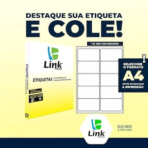 Transforme a organização e o profissionalismo dos seus envios e produtos Crie etiquetas personalizadas com facilidade e precisão, elevando a apresentação do seu negócio em segundos. Versatilidade Incomparável: Funciona perfeitamente com impressoras Inkjet, Laser e Ecotank, garantindo compatibilidade total. Pacote Econômico: Receba 100 folhas com 10 etiquetas cada, totalizando 1.000 etiquetas para suas necessidades. Medidas Ideais: Tamanho de 99,0mm X 55,8mm, perfeito para diversas aplicações. Qualidade : Produza etiquetas com acabamento impecável e alta definição. Formato Universal: Padrão A4, compatível com a maioria das impressoras. Especificações Técnicas: Tipo: Etiqueta Adesiva Formato: A4 Tamanho da Etiqueta: 99,0mm X 55,8mm Etiquetas por Folha: 10 Folhas por Caixa: 100 Total de Etiquetas: 1.000 Compatibilidade: Impressoras Inkjet, Laser e Ecotank Código do Produto: 9019 Não perca mais tempo Adquira agora seu kit de etiquetas A4 e impulsione a identidade visual do seu negócio. Clique em comprar e receba em sua casa Marca: Não Informado