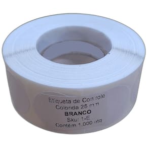 Etiqueta Adesiva Bolinha Colorida Branco 25mm 2,5 cm Rolo 1000 Unidades Etiqueta Adesiva Bolinha Colorida Branco 25mm 2,5 cm Rolo 1000 Unidades Etiquetas coloridas auto-adesivas, multi-uso Adesivo de alta qualidade Utilizadas em promoções, identificação, sinalização de defeitos, organização/separação de produtos por Cores, fechamento de convites e envelopes Muito utilizada por confecções e demais setores Industriais, Hospitalar, Controle de Qualidade, Logística, Transportadoras, na identificação de mão de obra externa Uso manual 16 cores diferentes Cores disponíveis: Amarelo, Amarelo Flúorescente, Azul Claro, Azul Escuro, Branco, Cinza, Laranja, Laranja Flúorescente, Marrom, Verde Escuro, Verde Flúorescente, Vermelho, Pink, Preto, Rosa, Roxo Etiqueta de Bolinha Adesiva Largura da Etiqueta 25 mm 2,5 cm Altura da Etiqueta 25 mm 2,5cm Material Papel adesivo colorido com adesivo à base de borracha e resina Quantidade por Rolo 1000 Etiquetas ATENÇÃO As cores que aparecem no monitor podem não corresponder exatamente às cores impressas devido À configuração do mesmo como Contraste, brilho, exposição e saturação de cores Servem, portanto, apenas de referência Embalagem Etiqueta Adesiva Bolinha Colorida Branco 25mm 2,5 cm Rolo 1000 Unidades 3 Meses Contra Defeito de Fabricação