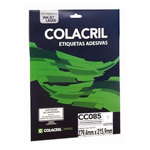 Etiqueta Adesiva Colacril Carta CC085 279,4x215,9mm C/10 As etiquetas Colacril podem ser utilizadas em casa ou no trabalho, assim identificando e mantendo a organização. Ideal para uso em arquivos, caixas, correspondências, documentos, encomendas, impressão de código de barras, mala direta, pastas, pequenos objetos, separação de materiais, entre outros.