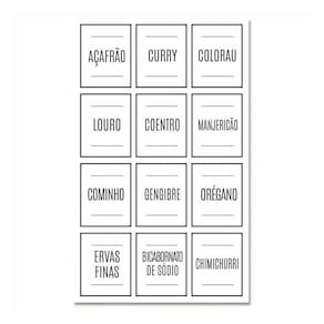 - Possui 24 etiquetas prontas para uso com escrita ( sal, pimenta do reino, canela entre outros)