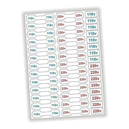 Os Nossos Adesivos de Parede são impressos com tinta Eco-Solventes com qualidade fotográfica em Vinil Autocolante, o que dispensa o uso de colas e evita sujeiras. São ideais para quem quer fazer mudanças em qualquer ambiente de sua casa sem gastar muito, além do seu preço acessível dispensa a contratação de profissionais, já que você mesmo a pode fazer a instalação. Adesivos de alta qualidade para você identificar suas tomadas e eletrônicos. Os adesivos são impressos em vinil auto-adesivo branco, resistentes e a prova d'água. Impressão em qualidade 1440 dpi ; Medida da cartela: 19 cm x 26 cm. Cada compra equivale a uma cartela com: 13 etiquetas 110 v para cabos; 7,1 cm x 1,7 cm 13 etiquetas 220 v para cabos; 7,1 cm x 1,7 cm 8 etiquetas 110 v para tomadas; 3 cm x 1,5 cm 8 etiquetas 220 v para tomadas. 3 cm x 1,5 cm Perfeito para identificação de tomadas e cabos. Atenção não trabalhamos com etiquetas de papel nossas etiquetas são de vinil a prova d'água Ean: 7898667230167