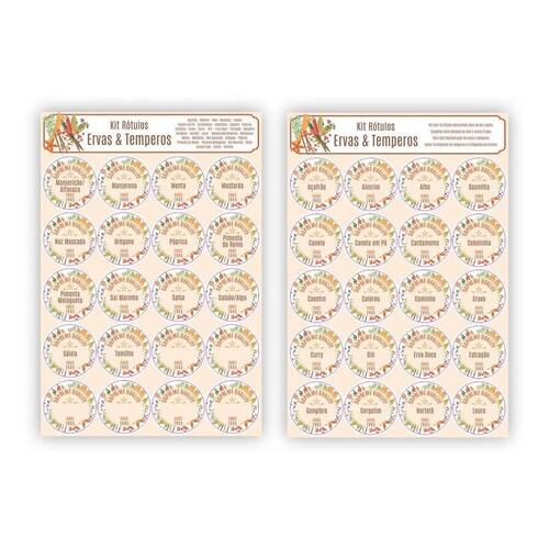 Kit Rótulos ERVAS & TEMPEROS Kit com 40 rótulos decorativos para jarras e potes. Etiquetas auto-adesivas de vinil a prova d'água. Para facil indentificação de ervas e temperos. Inclui 34 etiquetas de temperos e 6 etiquetas em branco. Medida das Etiquetas: 3,5 cm de diâmetro. Lista de Temperos: Açafrão Alecrim Alho Baunilha Canela Canela em Pó Cardamomo Cebolinha Coentro Colorau Cominho Cravo Curry Dill Erva Doce Estragão Gengibre Gergelim Hortelã Louro Manjericão/alfavaca Manjerona Menta Mostarda Noz Moscada Orégano Páprica Pimenta do Reino Pimenta Malagueta Sal Marinho Salsa Salsão/aipo Sálvia Tomilho. Ean: 7898667233076