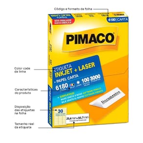 Etiqueta inkjet/laser carta 6180 com 100 folhas - Pimaco