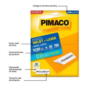 Pimaco Inkjet Laser Carta 6280 25,4x66,7mm