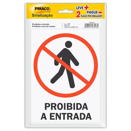 Conteúdo: 1 etiqueta de cada modelo ("Proibida Entrada" e "Proibido Celular"), atendendo à sinalização necessária em diferentes áreas.