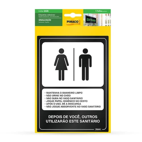 A etiqueta de sinalização Conservação de Banheiro Unissex da Pimaco é ideal para orientar usuários sobre a manutenção e cuidado dos sanitários unissex em ambientes comerciais, corporativos, escolares, hospitalares e públicos.