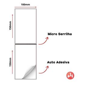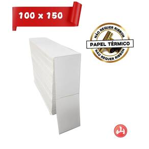 ESPECIFICAÇÕES TÉCNICAS: Material (Substrato): Papel Térmico Adesivo (Não utiliza Ribbon para Impressão) Largura Etiqueta: 100 mm (10 cm) Altura Etiqueta: 150 mm (15 cm) Tubete: (Não aplica) Carreiras: 01 Serrilha: Microserrilha entre Etiquetas Formato: Resma de Etiqueta Adesiva 100mmx150mm (10cmx15cm) Etiquetas Por Resma: 10.000 etiquetas (pct com 5.000 cada) Peso: 19.600gr