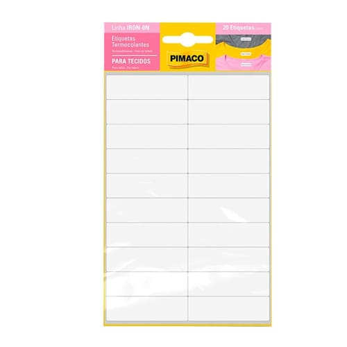 As etiquetas termocolantes brancas da Pimaco são ideais para identificar roupas e tecidos de forma simples, prática e duradoura. Sua aplicação é feita com o calor do ferro de passar, garantindo fixação firme e resistência às lavagens, sem comprometer o tecido.