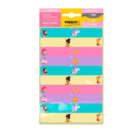 As etiquetas termocolantes Reino Encantado da Pimaco são perfeitas para identificar roupas e tecidos de forma prática e duradoura. Desenvolvidas especialmente para resistir às lavagens, elas são aplicadas facilmente com o calor do ferro de passar, garantindo fixação firme e acabamento discreto.