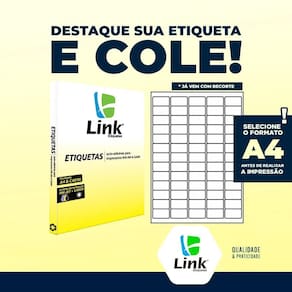 Cansado de etiquetas que borram ou não aderem Transforme seus documentos e produtos com a clareza e profissionalismo que eles merecem Seus projetos mais organizados e com acabamento Versatilidade Incrível: Perfeitas para impressoras Inkjet, Laser e Ecotank - imprima com qualidade em qualquer equipamento. Alta Qualidade de Impressão: Garante cores vibrantes e textos nítidos, sem borrar ou desbotar. Adesivo Poderoso: Fixação segura e duradoura em diversas superfícies, ideal para embalagens, envios e identificação. Rendimento Imbatível: Cada folha traz 65 etiquetas, totalizando 6.500 etiquetas para seus maiores projetos. Formato Prático A4: Compatível com todos os layouts de impressão padrão. Especificações Técnicas: Tipo: Etiqueta Adesiva Compatibilidade: Impressoras Inkjet, Laser e Ecotank Quantidade por Folha: 65 etiquetas Quantidade de Folhas: 100 folhas Dimensões da Etiqueta: 38,1mm x 21,2mm Formato do Papel: A4 Código do Produto: 9016 Eleve o nível da sua organização e apresentação Adquira agora suas etiquetas adesivas A4 e veja a diferença na praticidade e no visual dos seus trabalhos. Clique em Comprar Agora e garanta já as suas